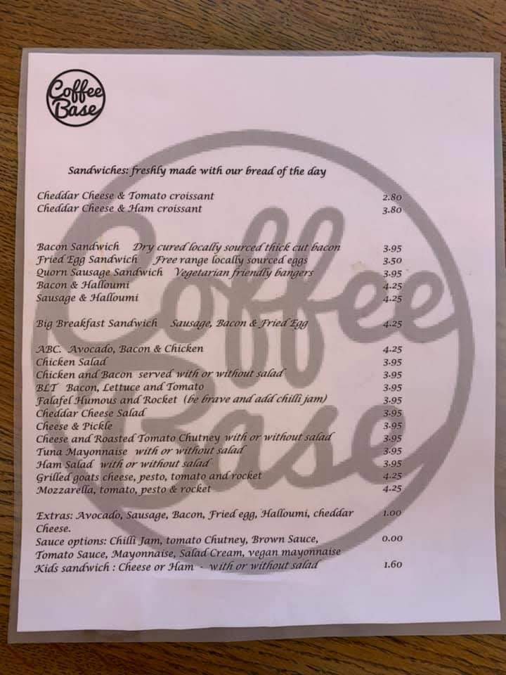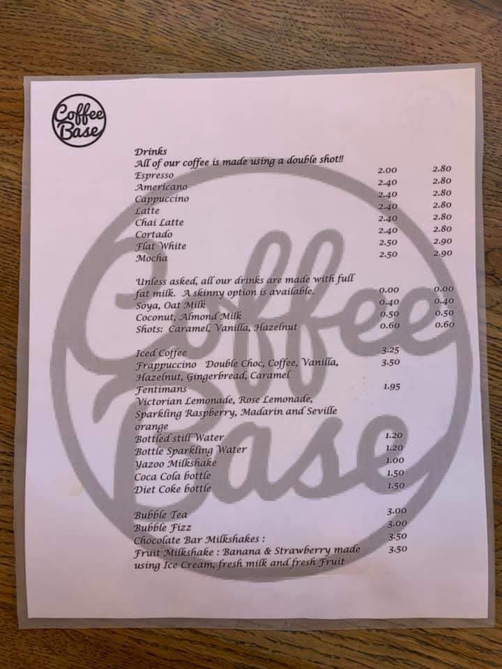 “ I don’t really do reviews but couldn’t resist this time after the experience at Coffee Base. About a week ago I ordered a coffee to go and I was handed a cup fully filled the way that by the time I got it in my hand it started spilling on my hand. I told them at the time that is not a good way of making a coffee as that can cause a burn. Also that coffee wasn’t even black because of amount of the water. The owner who witnessed it asked them to make me another coffee in smaller cup and not to fill it up fully. Yesterday I ordered another coffee from them specifically asked them to make it in the smaller cup and not to fill it to the top. Again I was handed a cup filled to the very top so by the time I grabbed a cup, it had spilled on my hand. I asked the woman who served it that she made a mistake as this hasn’t been done as my request. I was told that they are trained to make coffee that way. All staff become very rude towards me. Eventually I was given another coffee by one members of the staff. I was seating at the table with my friends and they all were shocked seeing how that was served to me. The employee just put a cup on my table in front of me (almost throwing it) without a word and walked away. Another member of staff had thrown my first coffee to the bin with anger. What an attitude towards your customers. No word of apologies at all from anyone. The chef got involved as well. I was glad to see him as he made my mind not to eat there at anytime looking the way he looked wearing filthy clothes. I wouldn’t be brave to eat something prepared by that person. On top of that he was very rude and asked me before I left if I liked my coffee now in ironic way. Unbelievable how those young people treat customers. They need a good training otherwise the owner will keep loosing her customers. We usually come to have a meal in large group of friends as our kids play football locally so it was quite convenient to pop in. Not anymore. I rather make coffee at home or find somewhere else to go as I don’t like to spend my money at place where I don’t feel appreciated. To summarise quality of the coffee 0 Customer service 0 ”